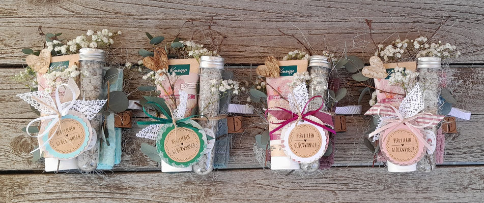 Sie eigen sich auch gut als Geschenk in einem Geschenkkorb oder als kleines Mitbringsel mit unserem Kräutersalz.
