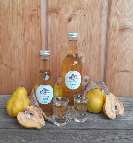 Quitten 35%, Vodka, brauner Rohrzucker, Wasser und Zitronen.