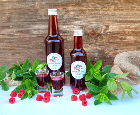 Himbeeren 35%, Minze, Vodka, Zucker und Wasser.