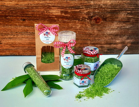 Salz Sorten: Mediterranes-, Domi`s Garten- und Bärlauch Salz.